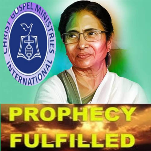 ON 31rd March 2021 As the Lord revealed it twice Pastor Lydia declared that Shri. Mamata Benerjee will win for the 3rd time .Today it came to pass.All glory to Jesus .